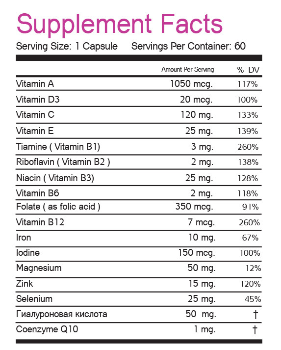 | Застосування препарату | при заняттях спортом та тренуваннях, для імунітету, для щитоподібної залози, Для шкіри, волосся та нігтів, для серця та судин, для нервової системи та мозку |